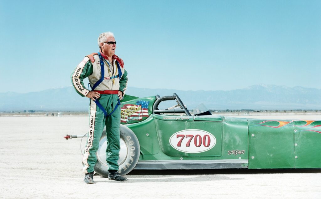 Ich portraitierte die Fahrer direkt nach ihrem Run. Nach dem Geschwindigkeitsrausch alleine am Ende der Piste, mit ihrem »Lakester«, »Streamliner« oder »Roadster«.